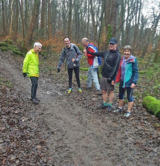 A sea of happy faces greeted us when we finally arrived at the correct starting point having been up and down Warton main road several times in error. The hashers were either very pleased to see us after several months (unavoidable) absence OR they all had wind! Lots of hugs and kisses confirmed they were pleased to have us back in the hash bosom (especially when I offered chocolates round)! We were given hash instructions read from a script by BM and off we trotted following a live hare - Thunderdick. Lurch (attired in non-hash clothing) indicated he wouldn’t be doing much r*nning as he had the lurgy but after a few minutes, he was breathing down my neck trying to get past!