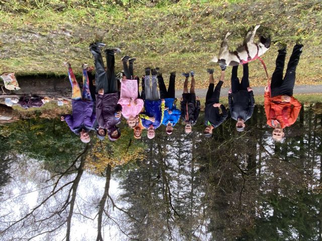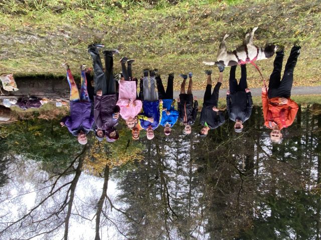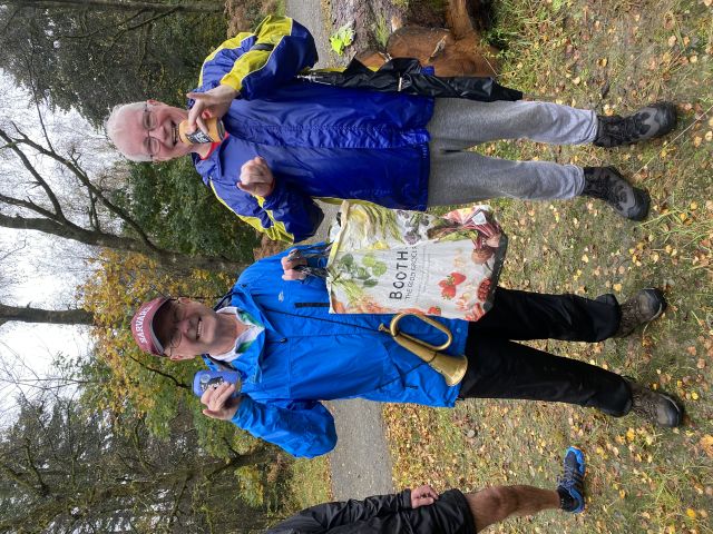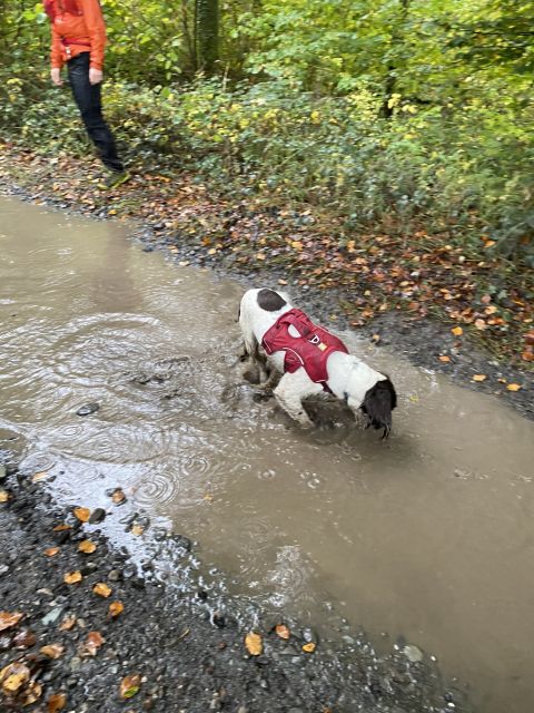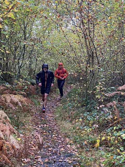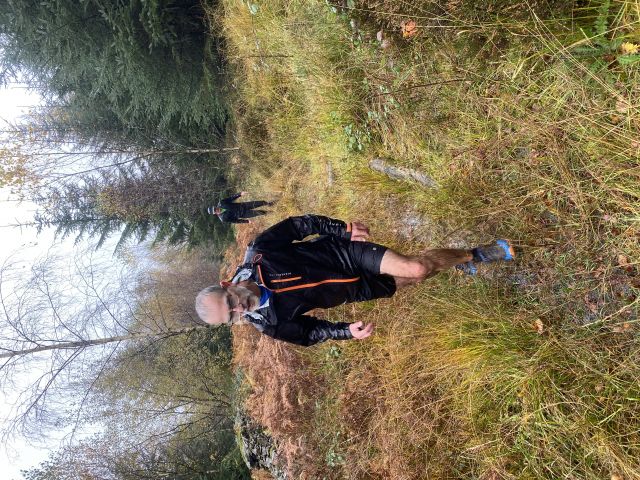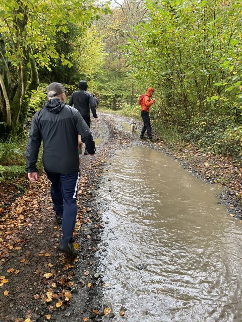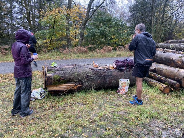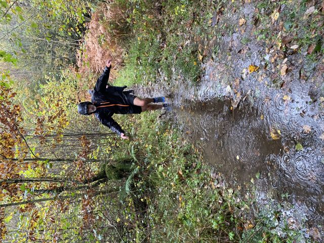Those who decided to give today a miss - shame on you, hope you've all got a sick note from matron to support your aegrotat claims - actually missed a real treat; a lovely, scenic trail, plenty of woodland, hilly but with a paced, gradual climb, rather than sudden, vertical ascent, not too long, and with expertly timed splits. Not to worry, absentees can recreate the experience in their own back gardens by throwing buckets of water at one another. There was evidence of trail sabotage, but fortunately the hares were with us to see us right.