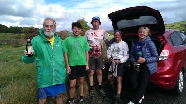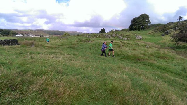 We gathered in the pub carpark where Sir Tom Tom gave us a detailed brief on the trail, so detailed in-fact I saw a blind man running the trail without his stick. We left the car park promptly at 11:09 and proceeded down the causeway into Bouth Fall Stile, it was at this point that the wimps decided to walk the Rambo trail. Many cupcakes could have been baked with the wasted flour. The trail took us in a loop through Ashes Intake and around Old Hall Farm. On through Dockney Parrock, and to the top of the hill where we were treated to clear views of Blawith Fells towards Conistone. The skies soon changed and went dark, water from the sky was imminent. Fortunately a few minutes later we had tree cover when it arrived, it was a quick shower and we could smell the beer stop in the distance. East from High Longmire took us over the hill top to a gated road where we turned right back to the Pub. The main objective of the run was to try and find the pink sheep. I am not admitting to finding them but my white t shirt and wellies are now pink. A good trail with a mix of woodlands and open hills.