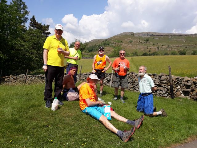 Our mobile Beer-stop was carried by Lurch, so we had it twice, once by a babbling brook and again on a bridal track. the second hill was unexpected and brought us down through a new piece of woodland back to Austwick, where we had no circle but drove straight to Clapham for better pub food.